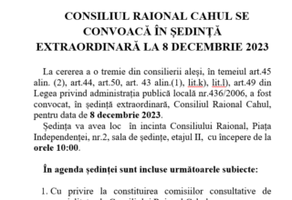 CONSILIUL RAIONAL CAHUL SE CONVOACĂ ÎN ȘEDINȚĂ EXTRAORDINARĂ LA 8 DECEMBRIE 2023