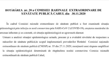 Noutăți Hotărârea nr. 35 a Comisiei Naționale Extraordinare de Sănătate Publică din 27 noiembrie 2020