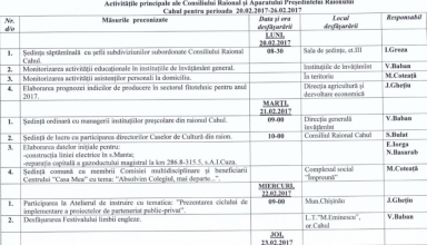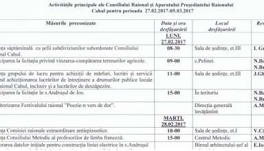 Noutăți Activitățile principale ale Consiliului Raional și Aparatului Președintelui Raionului Cahul pentru perioada 27.02.2017- 05.03.2017