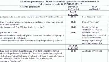 Noutăți Activitățile principale ale Consiliului Raional și Aparatului Președintelui Raionului Cahul pentru perioada 06.03.2017- 12.03.2017