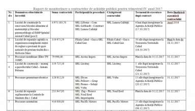 Achiziții publice Raport de monitorizare a contractelor de achiziție publică pentru trimestrul IV anul 2017