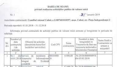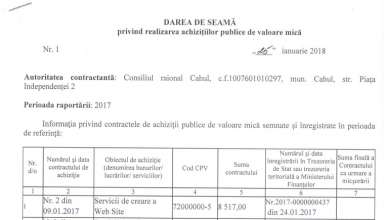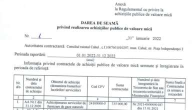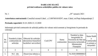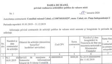 Achiziții publice DARE de SEAMĂ privind efectuarea achizițiilor publice de mică valoare efectuate de către Consiliul Raional Cahul