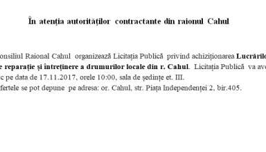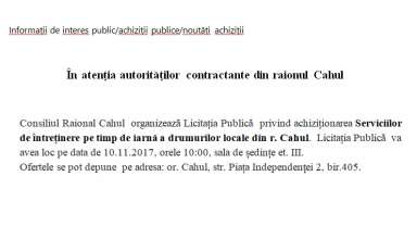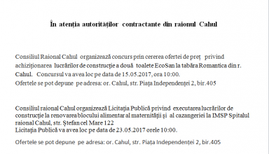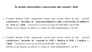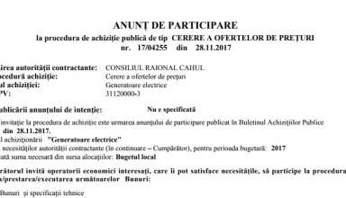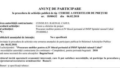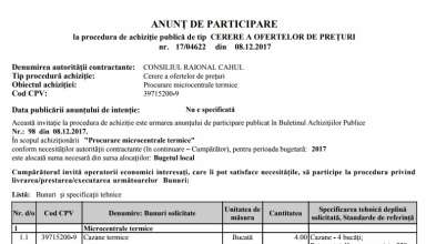 Achiziții publice Anunț de participare la procedura de achiziție publică de tip CERERE A OFERTELOR DE PREȚURI