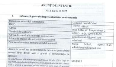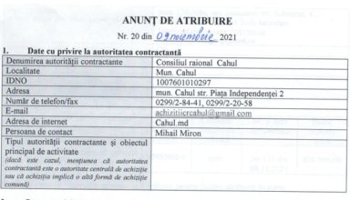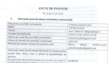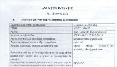 Achiziții publice Anunț de intenție privind achiziționarea serviciilor de întreținere pe timp de iarnă a drumurilor locale din raionul Cahul