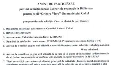 Achiziții publice Anunt de participare privind achiziționarea: Luсrări de rераrаțiе la Biblioteca реntru copii „Grigore Viеru” din municipiul Cahul