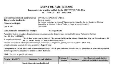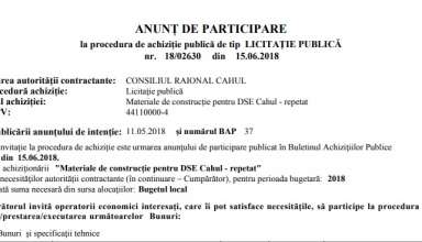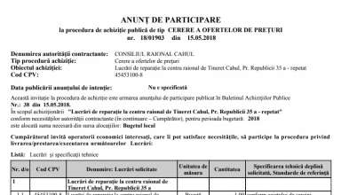 Achiziții publice ANUNȚ de participare la procedura de achiziție publică de tip CERERE A OFERTELOR DE PREȚURI