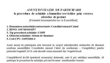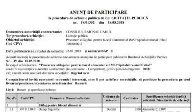 Achiziții publice Anunț de participare la procedura de achiziție a bunurilor și serviciilor prin cererea ofertelor de prețuri