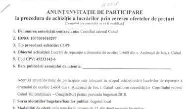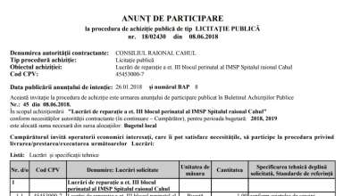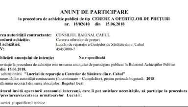 Achiziții publice Anunț! Invitație de participare la procedura de achiziție a lucrărilor prin cererea ofertelor de prețuri