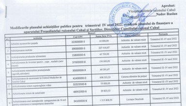 Achiziții publice Planul de achiziții publice al Consiliului raional Cahul pentru trimestrul IV al anului 2023, completat și modificat