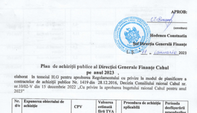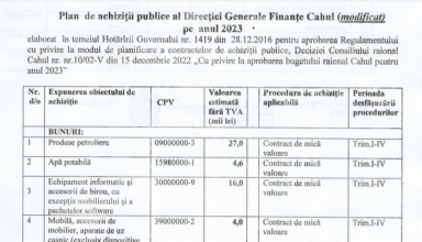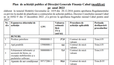 Achiziții publice Plan de achiziţii publice al Direcţiei Generale Finanţe Cahul (modificat) pe anul 2023