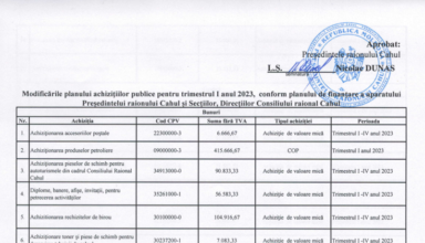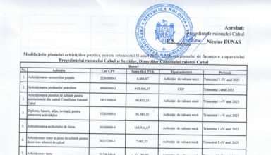 Achiziții publice Planul de achiziții publice al Consiliului raional Cahul pentru semestrul III-IV al anului 2023, completat și modificat