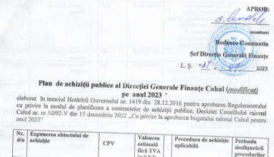Achiziții publice Plan de achiziții publice al Direcției Generale Finаnțe Саhul (modificat) ре аnul 2023
