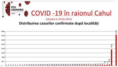 Nivelul de infectare cu virusul COVID–19 în raionul Cahul, la data 18 februarie 2021