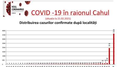 Nivelul de infectare cu virusul COVID–19 în raionul Cahul, la data de 21 februarie 2021