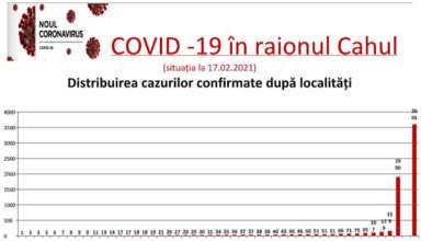 Nivelul de infectare cu virusul COVID–19 în raionul Cahul, la data 17 februarie 2021