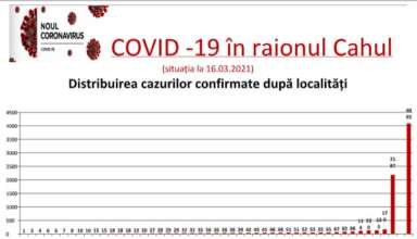 Nivelul de infectare cu virusul COVID–19 în raionul Cahul, la data de 16 martie 2021