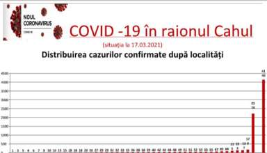 Nivelul de infectare cu virusul COVID–19 în raionul Cahul, la data de 17 martie 2021
