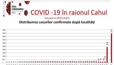 Nivelul de infectare cu virusul COVID–19 în raionul Cahul, la data de 28 martie 2021
