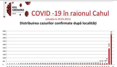 Nivelul de infectare cu virusul COVID–19 în raionul Cahul, la data de 29 martie 2021