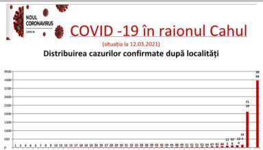 Nivelul de infectare cu virusul COVID–19 în raionul Cahul, la data de 12 martie 2021