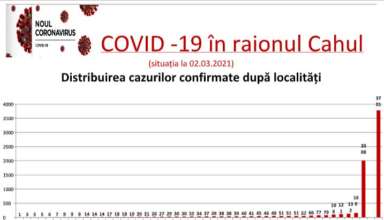Nivelul de infectare cu virusul COVID–19 în raionul Cahul, la data de 02 martie 2021