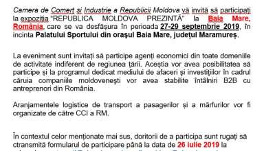 Anunțuri INVITAȚIE la cea de a II-a ediție a expoziției “REPUBLICA MOLDOVA PREZINTĂ” la Brașov, România