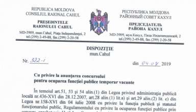 Anunțuri ANUNȚ cu privire la organizarea concursului pentru ocuparea funcției publice temporar vacante de specialist Serviciul arhivă din cadrul Aparatului președintelui raionului