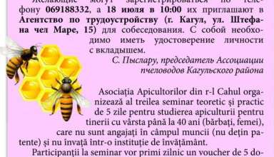 Anunțuri ANUNȚ! Asociația Apicultorilor din raionul Cahul va organiza un seminar pentru studierea apiculturii