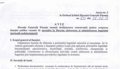 Anunțuri ANUNȚ cu privire la organizarea concursului pentru ocuparea funcției publice vacante de specialist în Direcția elaborarea și administrarea bugetului (perioadă nedeterminată)