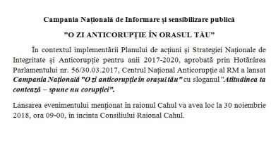 Anunțuri În atenția autorităților publice locale, a conducătorilor de instituții, întreprinderi și asociații, reprezentanților societății civile, tuturor locuitorilor raionului Cahul!