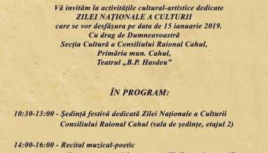 Anunțuri Programul activităților cultural-artistice dedicate Zilei Naționale a Culturii – 15 ianuarie 2019