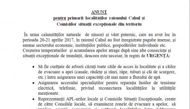 Anunțuri ANUNȚ pentru primarii localităților raionului Cahul și Comisiilor situații excepționale din teritoriu