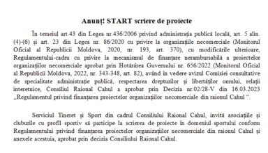 Anunțuri Consiliul Raional Cahul anunță prelungirea termenului concursului pentru ocuparea funcției publice vacante de Șef al Direcției Generale Învățământ Cahul