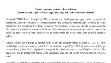 Anunțuri Concurs pentru granturi de mobilitate pentru artiști și profesioniști/reprezentanți din toate domeniile culturii