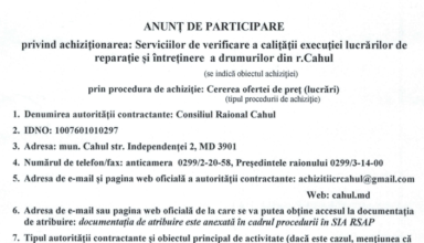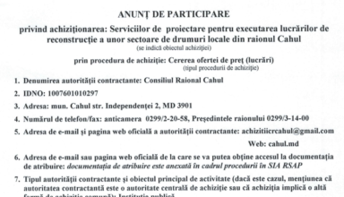 Noutăți Anunț privind concursul pentru ocuparea funcției publice de conducere vacantă, de șef Serviciul relații funciare, cadastru și patrimoniul public din cadrul Consiliului Raional Cahul