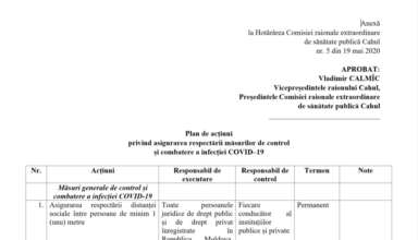 Noutăți Plan de acțiuni privind asigurarea respectării măsurilor de control și combatere a infecției COVID–19