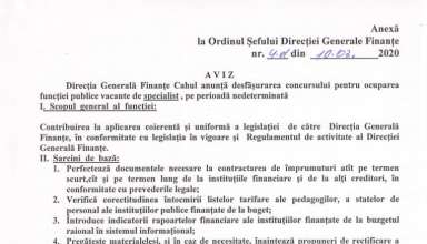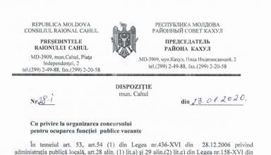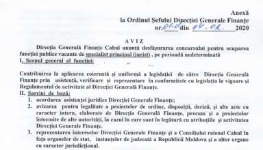 Anunțuri ANUNȚ cu privire la organizarea concursului pentru ocuparea funcției publice vacante de Specialist principal, Serviciul Sănătate din cadrul Aparatului președintelui raionului