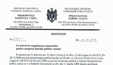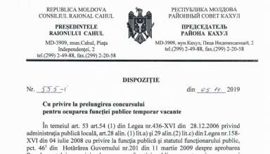 Anunțuri ANUNȚ cu privire la prelungirea concursului pentru ocuparea funcției publice temporar vacante de specialist superior, Secția Cultură, Consiliul Raional Cahul