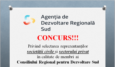 Anunțuri Agenția de Dezvoltare Regională Sud anunță concursul de selectare a reprezentanților societății civile și sectorului privat în calitate de membri ai Consiliului Regional pentru Dezvoltare