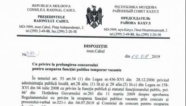 Anunțuri ANUNȚ cu privire la prelungirea concursului pentru ocuparea funcției publice temporar vacante de specialist superior în Direcția agricultură și dezvoltare economică