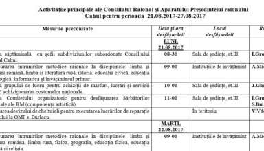 Noutăți Activităţile principale ale Consiliului Raional şi Aparatului Preşedintelui raionului Cahul pentru perioada 21.08.2017-27.08.2017
