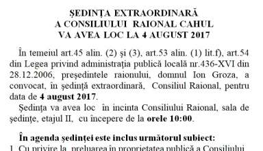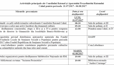 Noutăți Activităţile principale ale Consiliului Raional şi Aparatului Preşedintelui Raionului Cahul pentru perioada 31.07.2017 – 06.08.2017