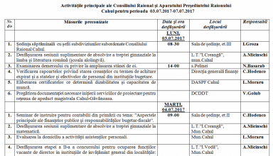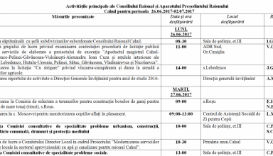Noutăți Activităţile principale ale Consiliului Raional şi Aparatului Preşedintelui Raionului Cahul pentru perioada 26.06.2017-02.07.2017