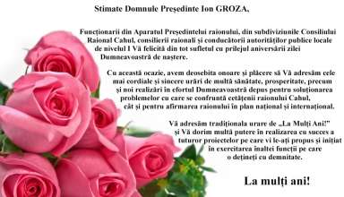 Noutăți Mulțumiri și aprecieri cu prilejul Zilei funcționarului public la Cahul din partea dlui Ion GROZA, președintele raionului Cahul