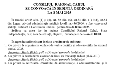 CONSILIUL RAIONAL CAHUL SE CONVOACĂ ÎN ŞEDINŢĂ ORDINARĂ LA 8 MAI 2025