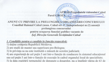 Anunțuri ANUNȚ privind prelungirea concursului реntru осuраrеа funcției publice vасаntе de Șef, Direcția Gеnеrаlă Învățământ Саhul