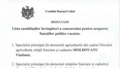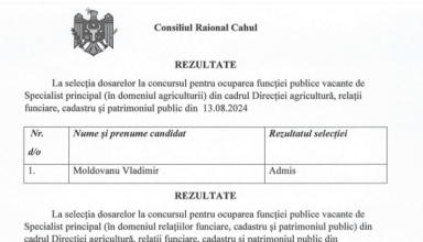 Noutăți REZULTATELE concursului pentru ocuparea funcțiilor publice vacante din cadrul Direcției agricultură, relații funciare şi cadastru