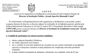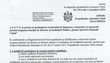 Anunțuri ANUNȚ privind prelungirea termenului de dерunеrе а dosarelor la соnсursul privind осuраrеа funcției de director al Instituției publice ,,Școala Sportivă Raională Cahul”
