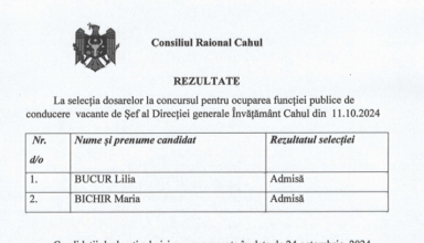 Noutăți REZULTATELE concursului pentru ocuparea funcției publice de conducere vacante de Șef al Direcției Generale Învățământ Cahul