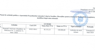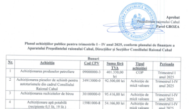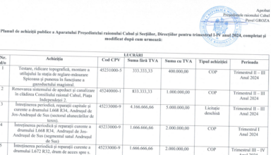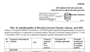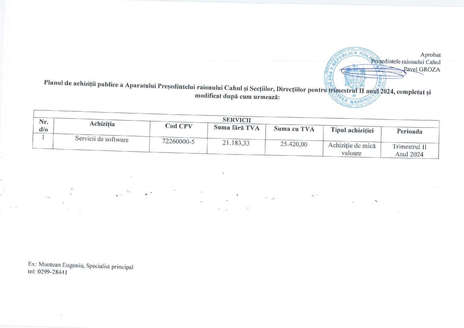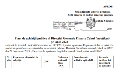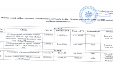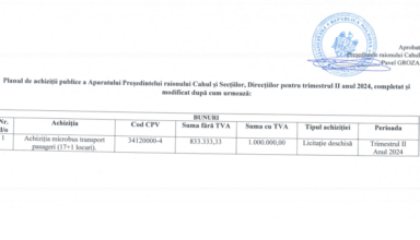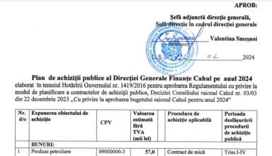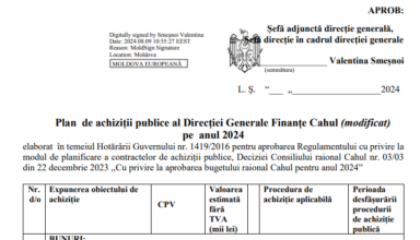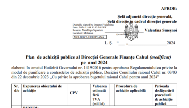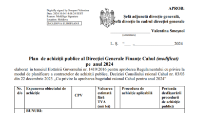 Achiziții publice Plan de achiziţii publice al Direcţiei Generale Finanţe Cahul (modificat) pe anul 2024